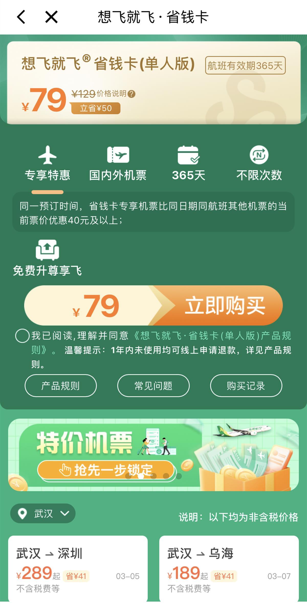 航空公司推出79元的省钱卡