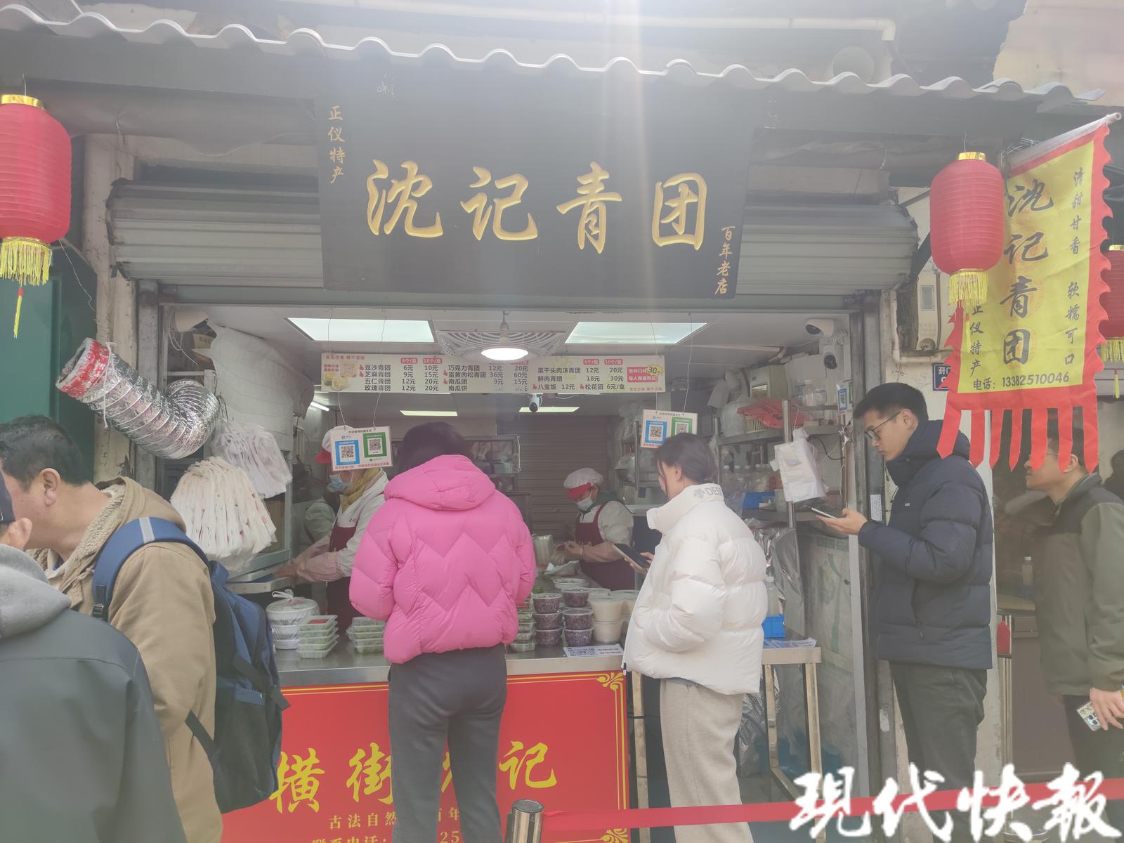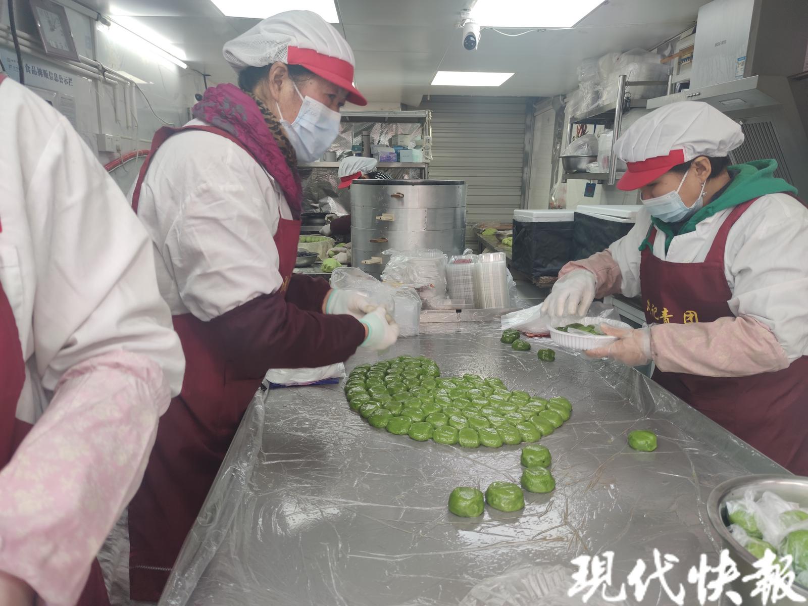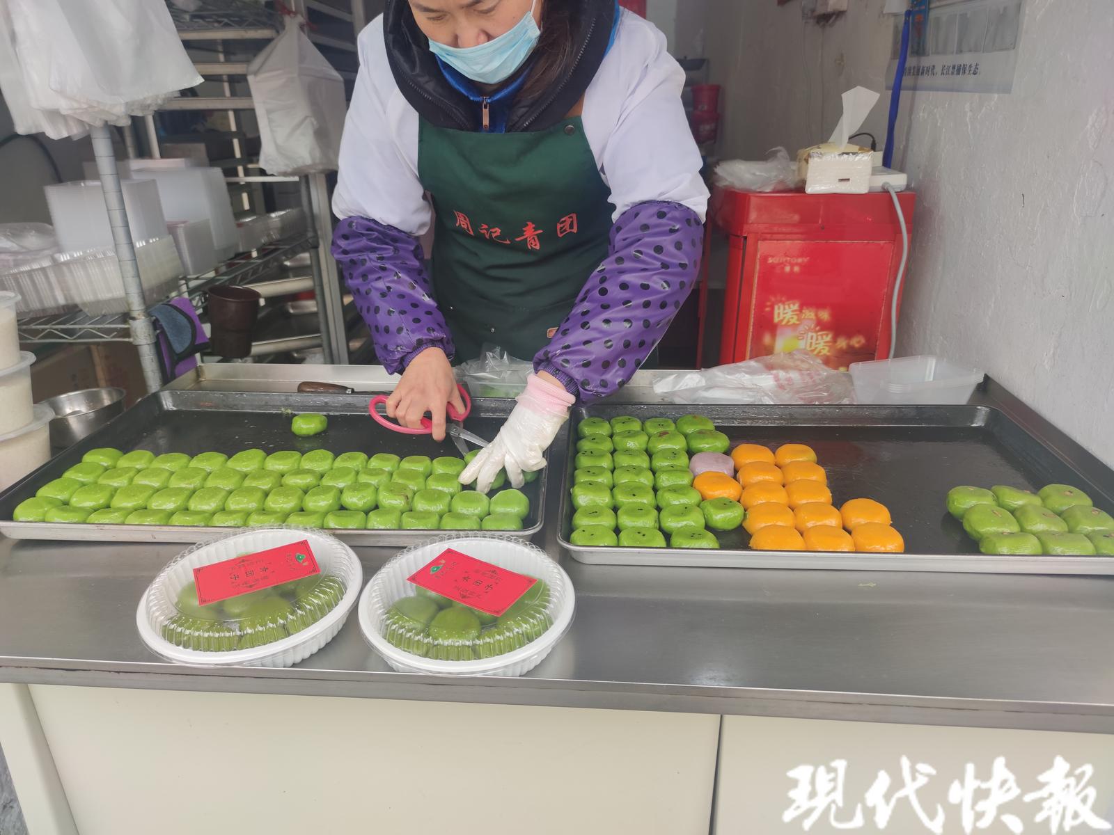 现代快报记者了解到,虽然这段时间还没到青团销售的最高峰,但部分热门店铺每天都要卖出上万只。每年青团上市的季节,店门前总是排着长长的队伍。横街某青团店店主沈建芬是昆山正仪人,从小就跟着爷爷学做青团。其所制青团馅料口味丰富,咸甜兼具,价格也较实惠,最便宜的豆沙青团1元/只,最贵的蛋黄肉松青团6元/只。周边其余店铺,每天最少也能卖出数千只,各家店铺价格基本一致。