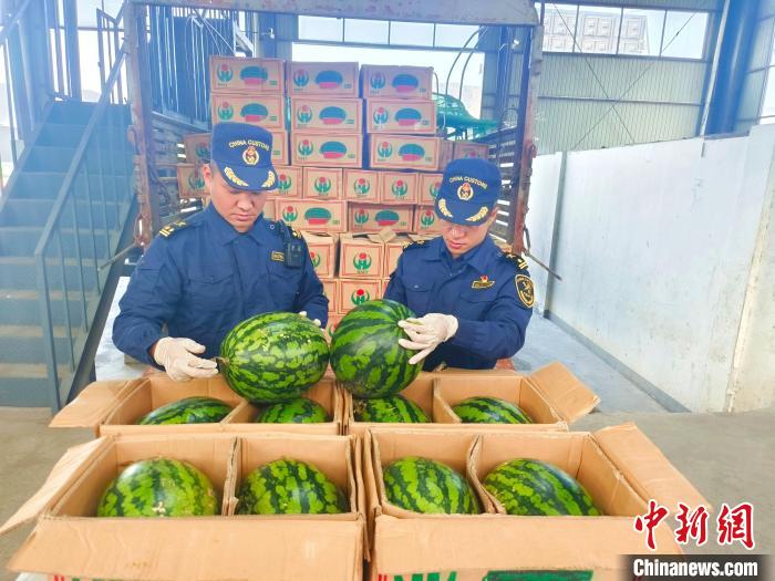 2月18日,畹町海关关员在畹町芒满通道查验缅甸进口西瓜。 何莉摄