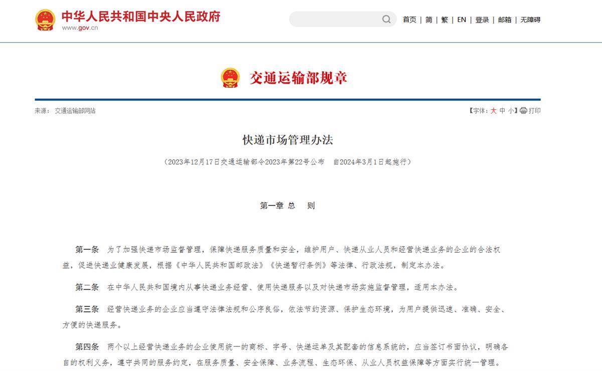 今起(2024年3月1日),饱受争议的矛盾点将有法可依——《快递市场管理办法》正式施行。