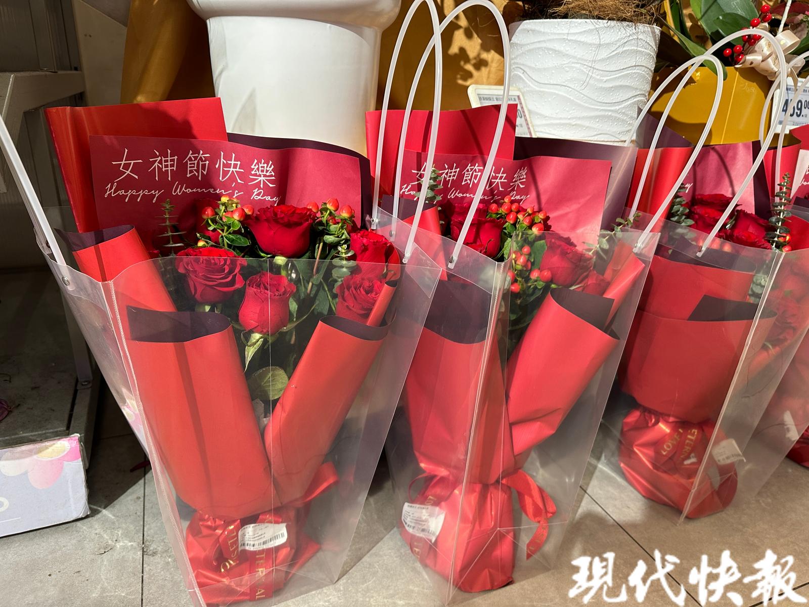 工作人员告诉记者,这两天康乃馨和玫瑰的销售明显上升。如果觉得单买鲜花有些麻烦,超市也有包装好的成品花束可供选择。“很多是附近的上班族趁着午休过来,给自己买一束花,或者买给关系亲密的女同事。”在采访中,不少女顾客觉得,一束花虽不贵,但能给自己带来一整天的好心情。