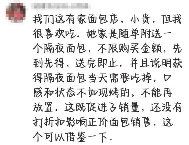 “小米”同时提到,多余的面包不要隔天继续卖,违规操作可能得不偿失;不要晚间直接打折,可能影响白天生意。