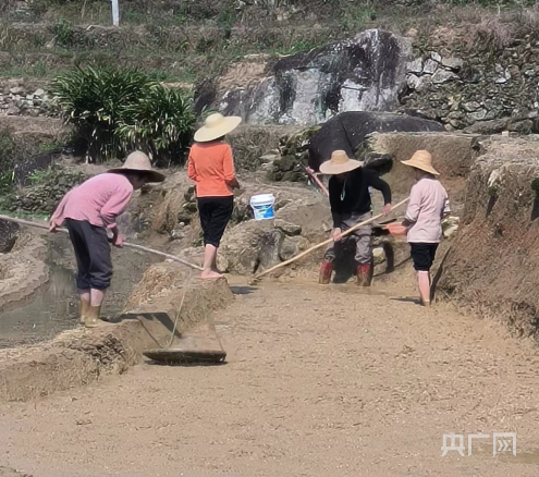 在国家AAA级景区古丁梯田里,央广网记者看到,参与春耕的农户干劲十足。清理杂草、翻整土地、播种育苗、施肥灭虫……他们操作着现代化农机,播下引进的优质品种,熟练运用华南农业大学教授传授的科学种植方法,分工明确,相互协作,有条不紊地推进着春耕备耕。