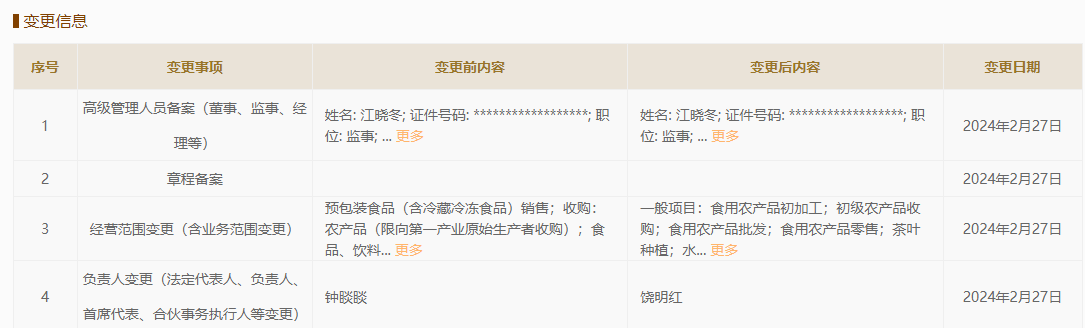 △国家企业信用信息公示系统显示,2月27日,浙江农夫实业发展有限公司完成负责人变更
