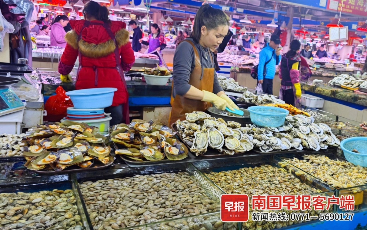 眼下又到了应季海鲜上市的好时节。在南宁各海鲜市场,青口贝、扇贝、花甲螺等螺贝类海鲜肉质肥美,价格也比此前有所走低。早春海鲜丰富,市民尝鲜正当时。