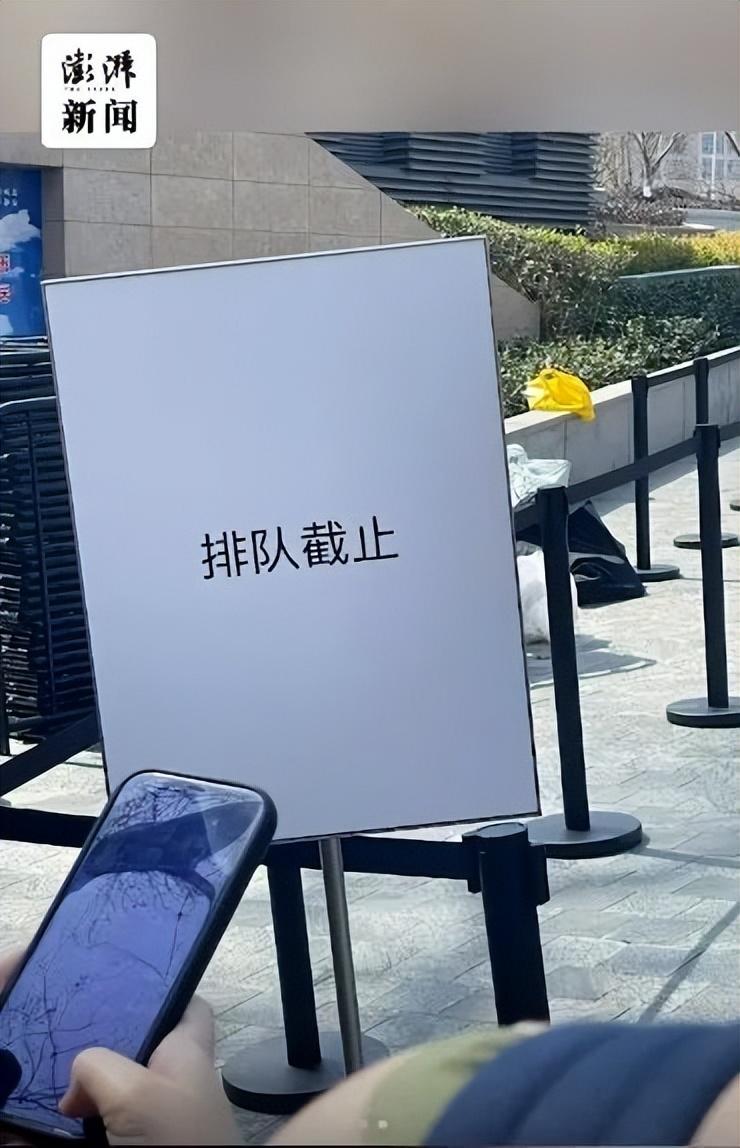 据澎湃新闻报道,到了中午,记者看到现场约有数百人在排队,有人在前一天晚上便开始通宵排队。现场一位消费者告诉记者,他中午11点之前到达时,门口就写着截止排队了。