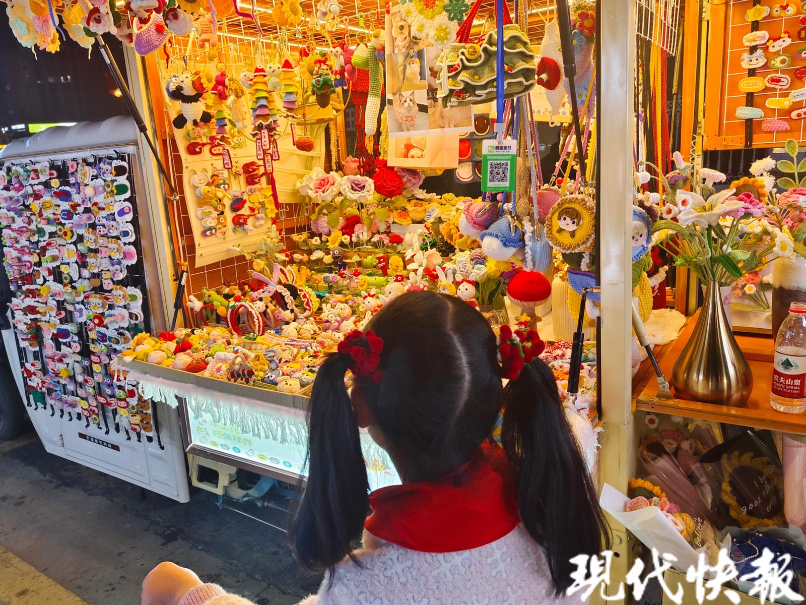老板蒋女士是个80后宝妈,平时在家喜欢给女儿钩织发卡、发圈等,前几年在女儿的鼓励下,在夜市摆摊卖手工针织品。“把热爱做成事业,还能贴补家用,我感觉很开心也很充实。”她说。