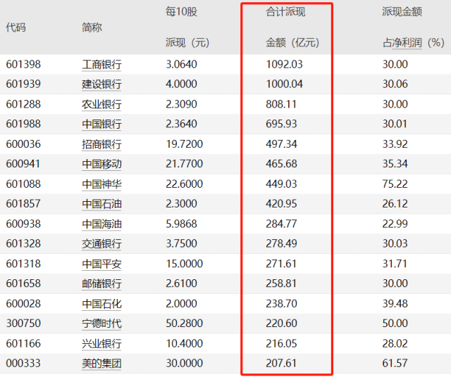 中国神华、招商银行、中国移动等千亿龙头的现金分红总额都超过百亿。就连常被市场诟病融资过度的宁德时代(300750.SZ)也给出了上市以来最阔气的分红方案,拟分红超过200亿元。