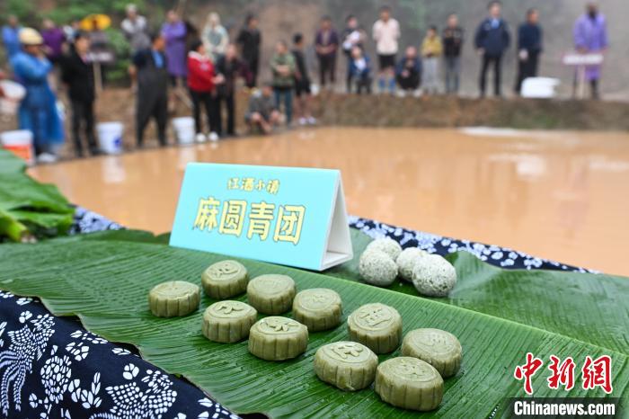 图为活动现场,为市民游客准备的麻圆和青团。 中新网记者何蓬磊摄