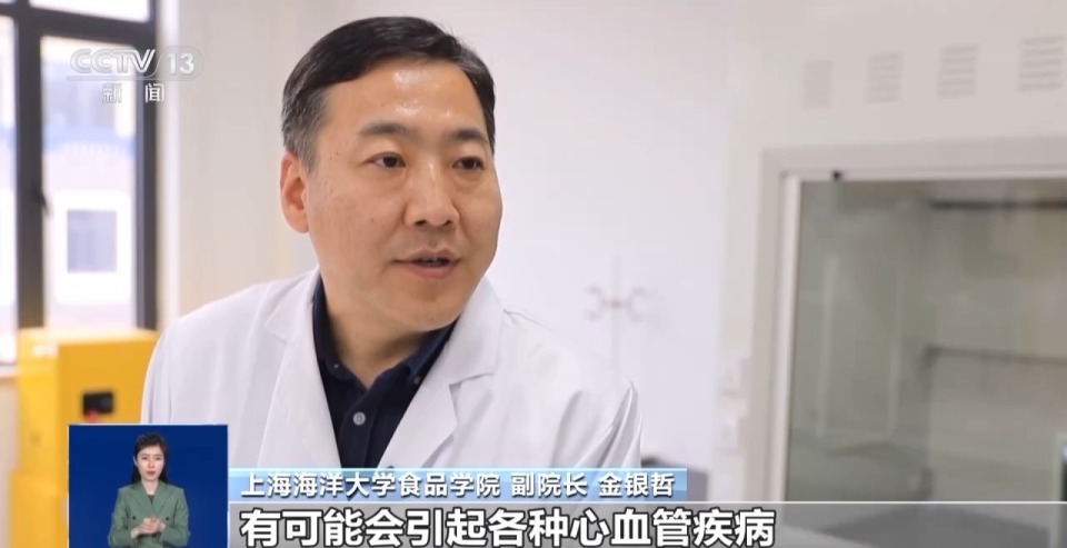 上海海洋大学食品学院 副院长 金银哲:制作和生产代可可脂植脂末等带有油脂的食品添加剂的生产过程中,不可避免产生反式脂肪酸,这类带有油脂的食品添加剂可以有效提高食品的香、酥、脆的特性,可以应用在食品和饮料的生产当中,但过多摄入反式脂肪酸,有可能会引起各种心血管疾病,影响儿童发育。