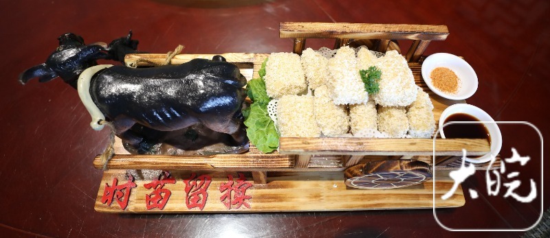 “时苗留犊的清廉故事在寿县家喻户晓,尽人皆知,我自创的这道豆腐菜就叫‘时苗留犊’。”张士宏指着餐桌上一辆微雕牛车载着豆腐的菜说,豆腐和时苗没有关系,而他从豆腐的清白和为官的清白中找到共同点,用一辆牛车拖着几块豆腐,传递了廉吏清风的美好寓意,希望做人清清白白,没有一点污点;做官是位清官,处处想着百姓。