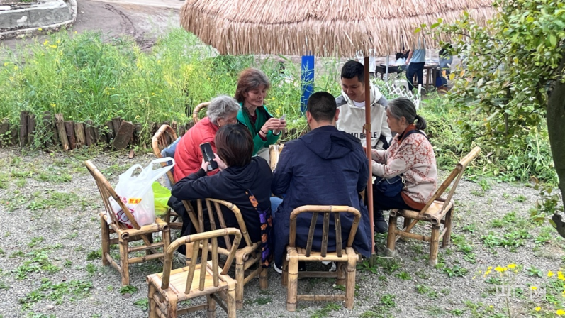 清明假期,市民在农家乐玩牌(央广网发记者肖庆华摄)