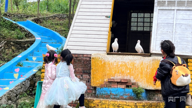 清明假期,孩子们在农家乐喂鸽子(央广网发邢洋洋摄)
