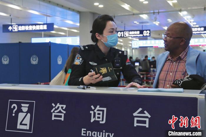2月6日,泉州边检站移民管理警察在泉州晋江国际机场解答外籍旅客咨询。 林政焰摄