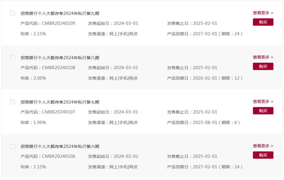 记者关注到该行三年期大额存单在去年的利率为2.9%,目前招商银行只提供最长期限为两年的存款产品,利率降至2.15%。