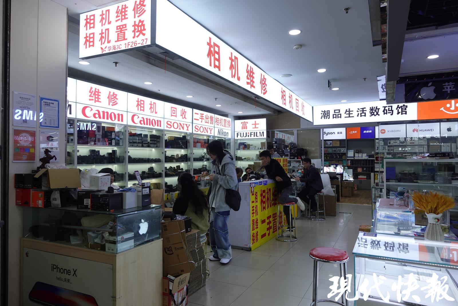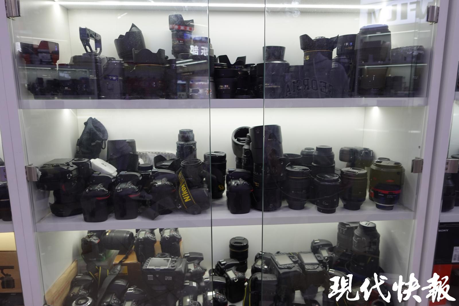 珠江路的未来城主要售卖电子产品,其中也不乏产品租赁服务。不同型号的相机、不同焦段的镜头都摆在玻璃柜里,等待客人的挑选。“租赁价格看物品本身的价值,比如说镜头,上万的镜头租赁价格为每天100多元。”一名店主说,选择租的人很多,大多以学生为主,还有一些摄影师。