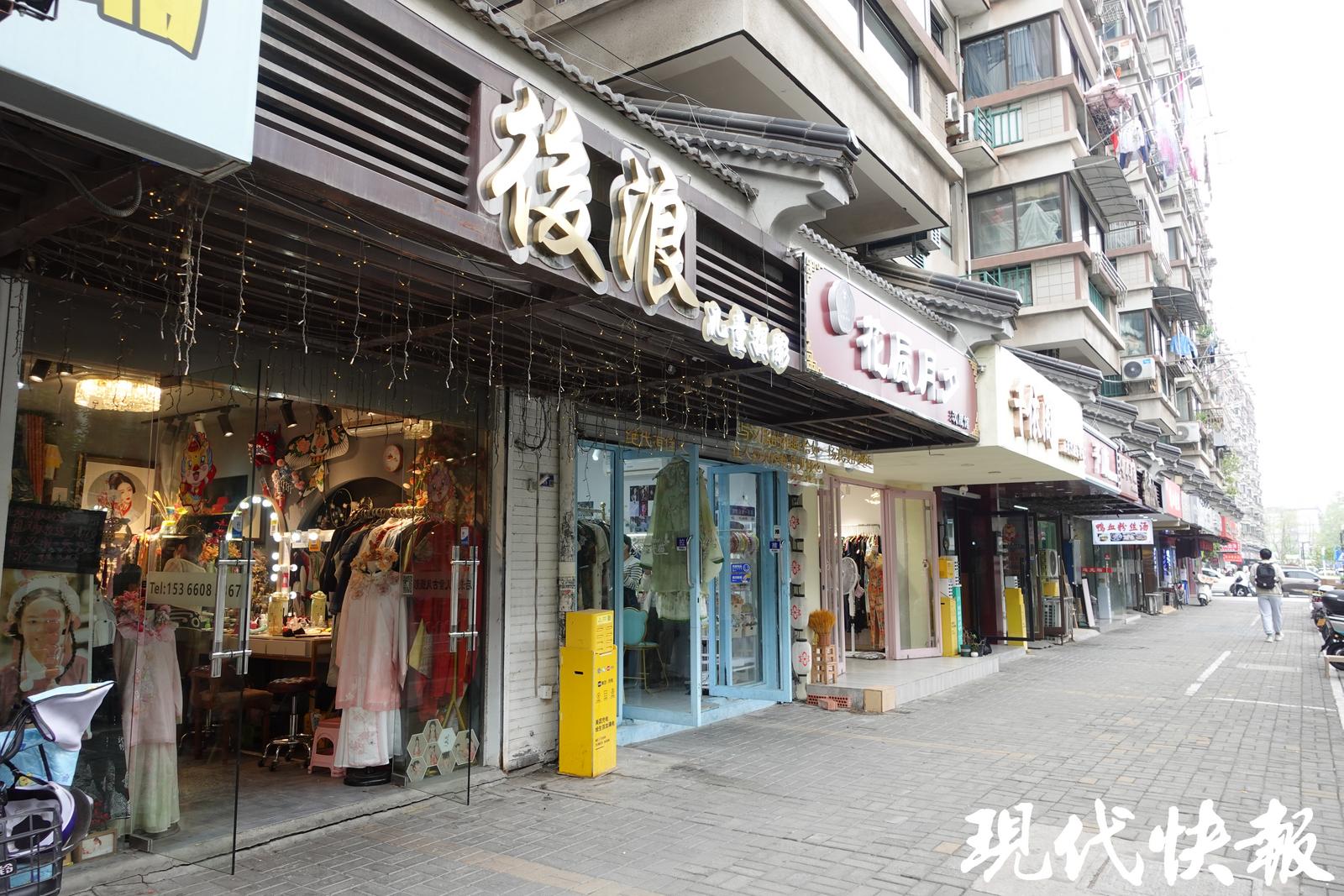 4月12日下午,现代快报记者来到老门东附近的剪子巷,沿街的商铺七成都是服装租赁店,即便是在工作日的下午,各个店里也陆续有人前来咨询。其中一个店铺的店员说,他们店主要提供汉服与旗袍的租赁,还有部分是比较华丽的、适合浓妆拍照的衣服,“一套衣服买回来大几百到上千元不等,出租的价格为89元一天。”