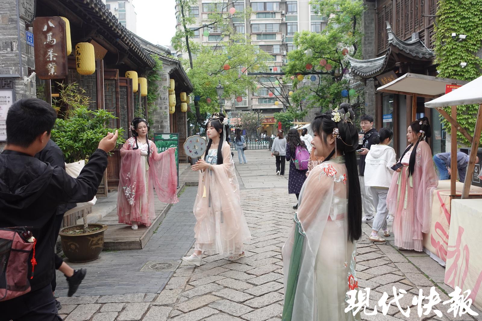 走进老门东,几步便有穿着汉服游玩拍照的女生,她们走在古色古香的建筑下,颇有“穿越”之感。“我的生日就要到了,来这里租个衣服拍照留念。”一位小姐姐说,成套汉服的价格比较高,“日常也没法穿,对于这种‘次抛’的衣服还是租赁比较好。”
