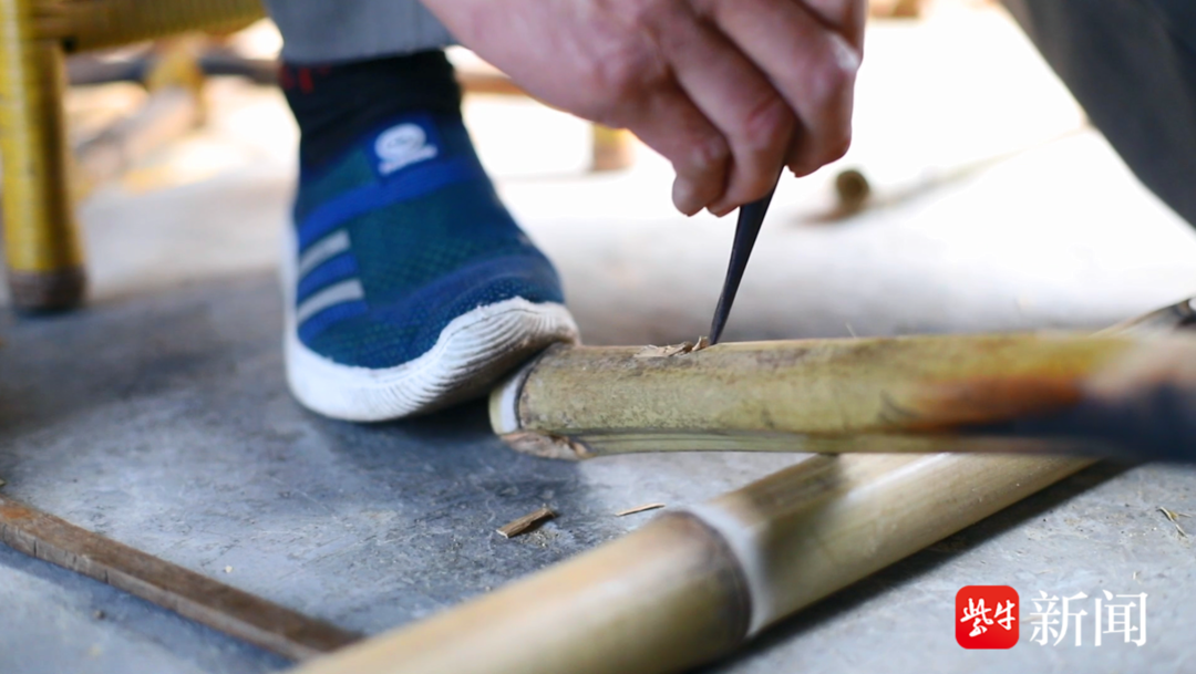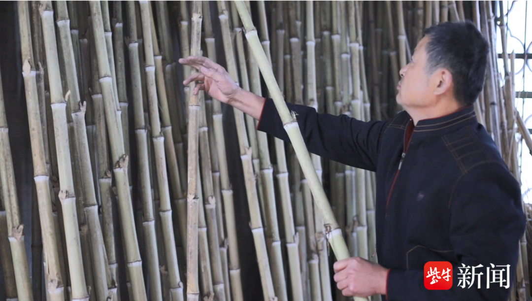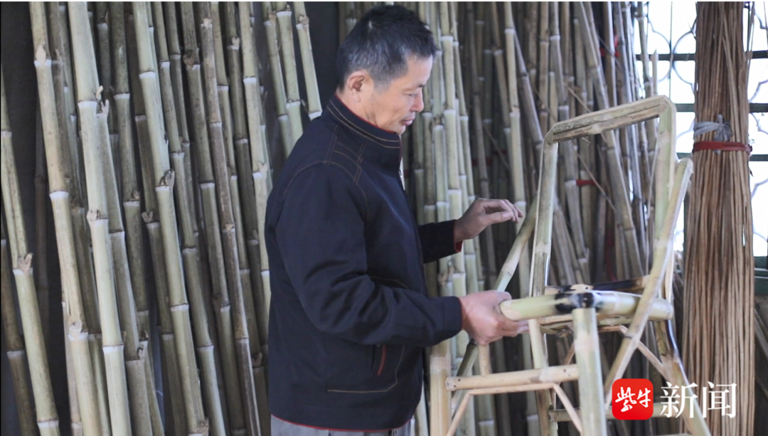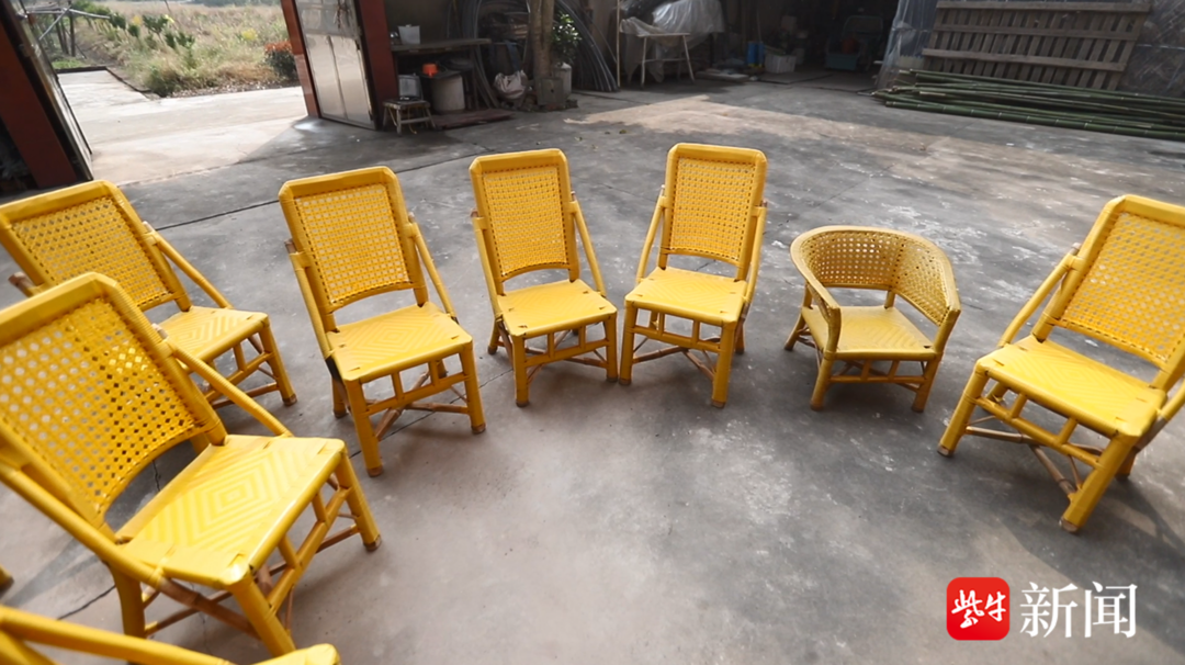 李雪明介绍,除了手艺,制作藤椅的用料也十分讲究。搭建椅子框架的竹子都是自己亲手栽种的,坚韧有力,晾晒1个月左右,收干水分进行储存。编织用的塑料藤也只跟合作多年的厂家进货,保证品质。