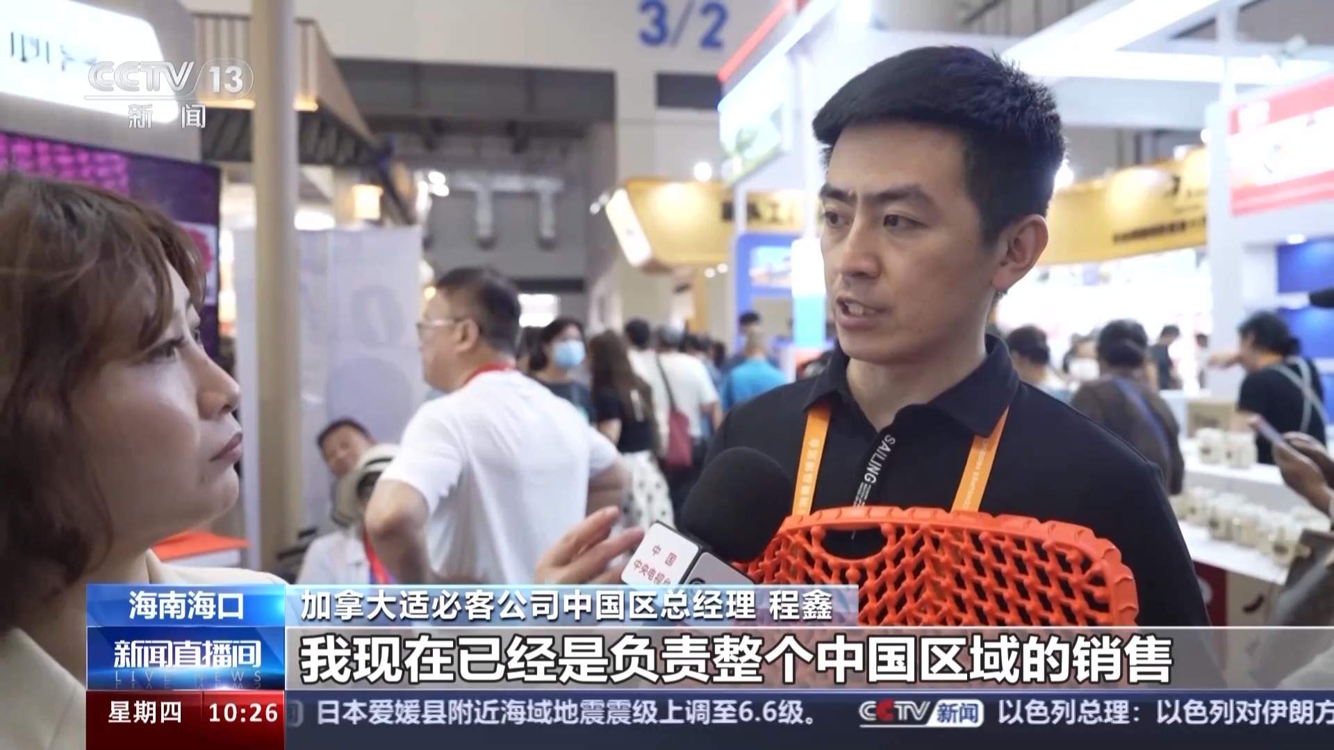 加拿大适必客公司中国区总经理程鑫:当时我们就想把这个产品技术带到中国,从去年的洽谈使用以后,我现在已经是负责整个中国区域的销售。