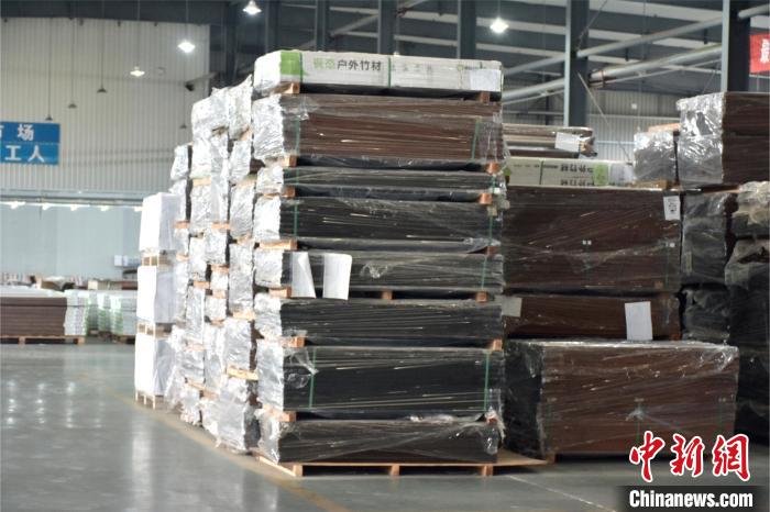 图为资溪县竹科技产业园内,江西竺尚竹业有限公司生产的户外板材。巫发阳摄