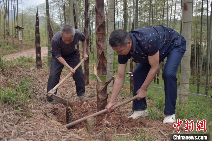 图为资溪县高阜镇林农正在挖竹笋。巫发阳摄