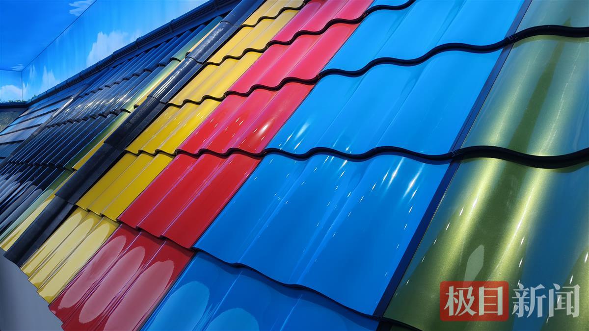 2024年4月25日,极目新闻记者参加“行走先行区看绿色低碳高质量发展”主题采访活动,来到曜灵时代(山东)新能源科技发展公司,颜色多样的建筑光伏一体化(BIPV)产品引人注目。