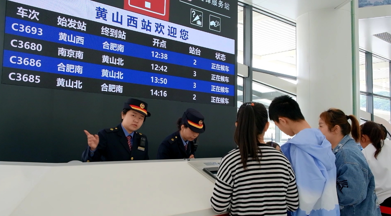 黄山西站12306服务台工作人员解答旅客咨询。汪林摄