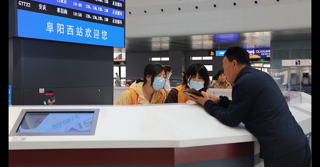 阜阳西站青年志愿者解答旅客咨询。张续亮摄