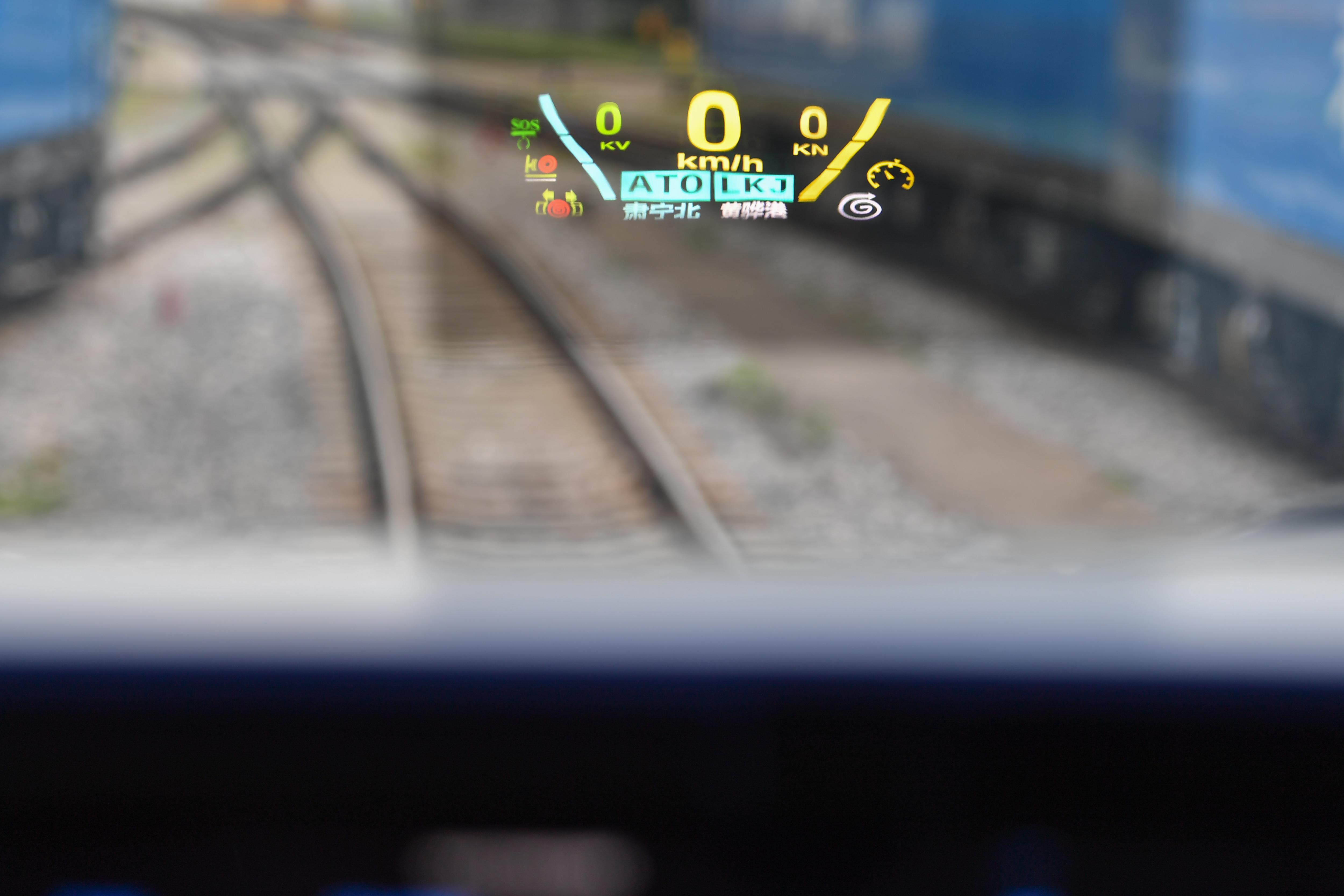 这是5月9日拍摄的国内首台新型智能重载电力机车的抬头显示屏幕。 新华社记者 陈泽国 摄