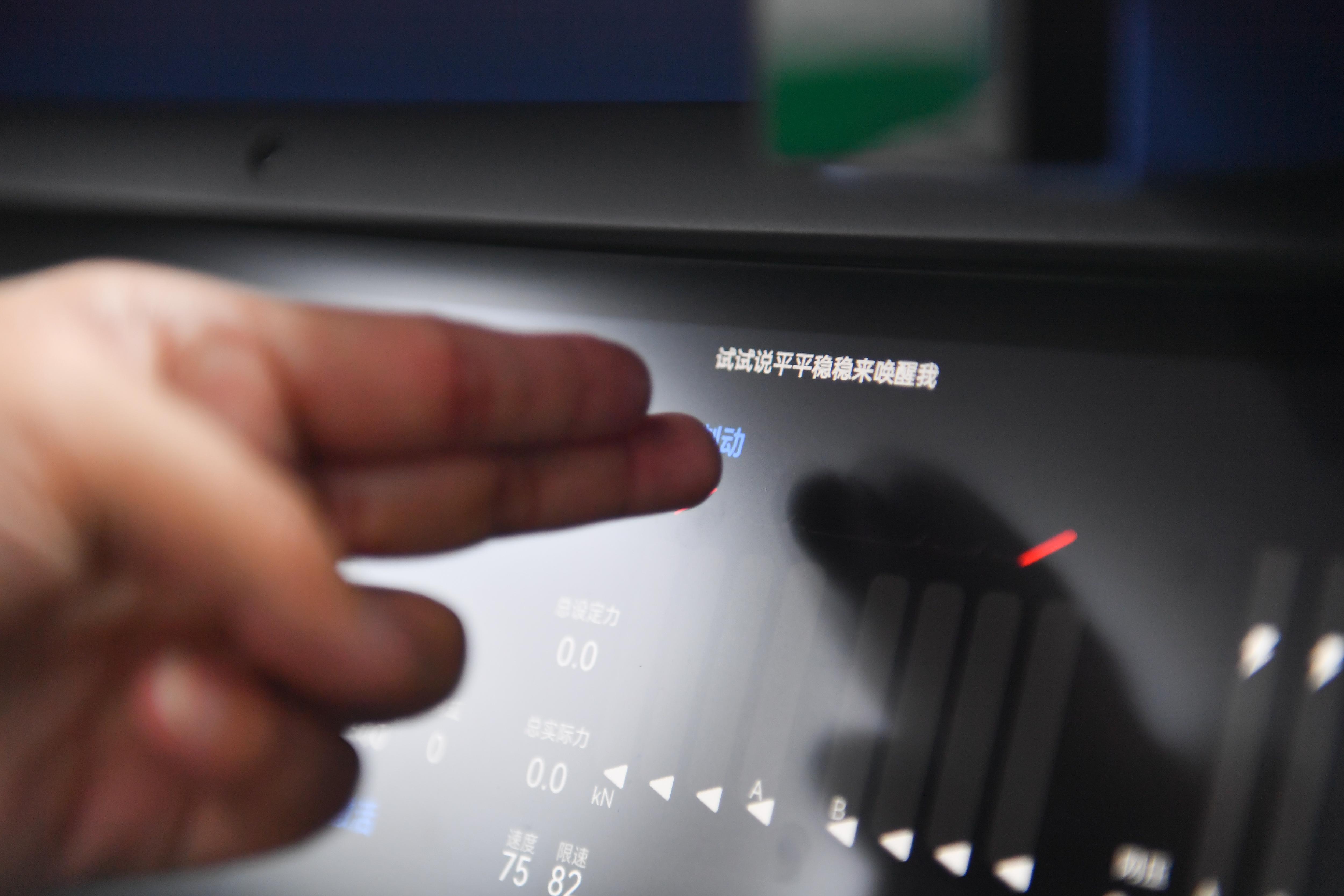 5月9日,工作人员在机车的智能座舱内演示人工智能语音交互系统。 新华社记者 陈泽国 摄