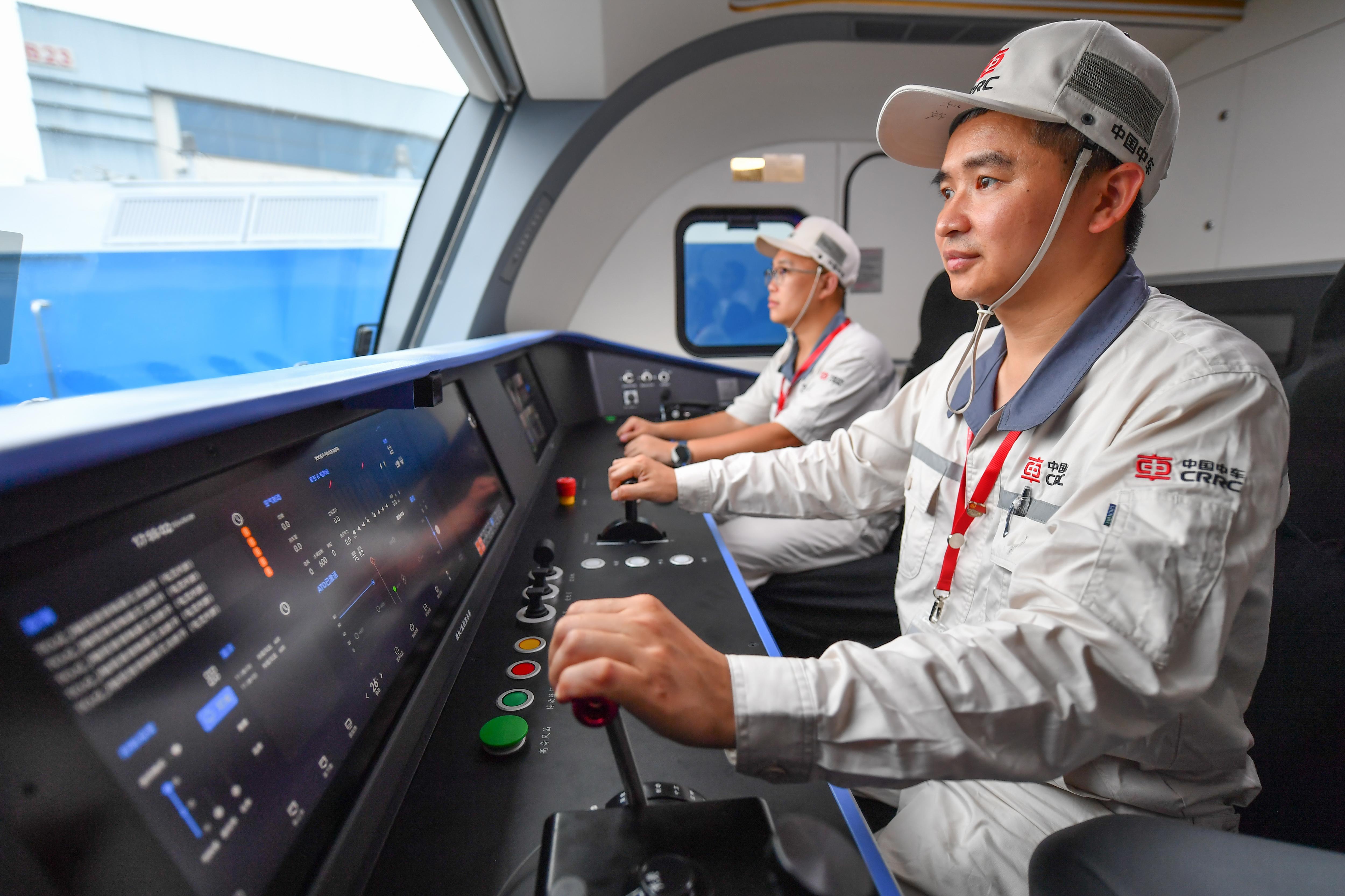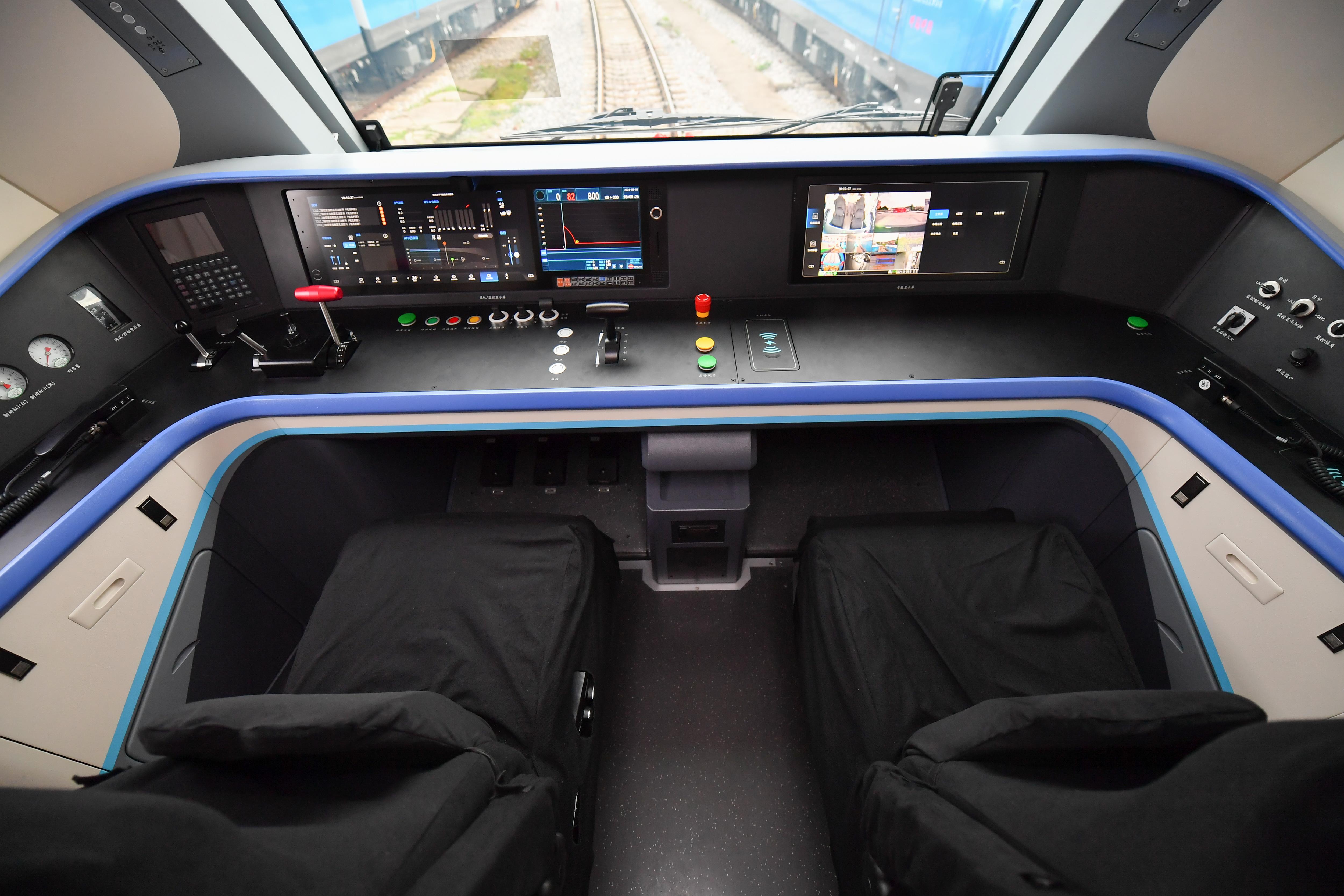 5月9日,工作人员在智能座舱内查看机车运行状态。 新华社记者 陈泽国 摄