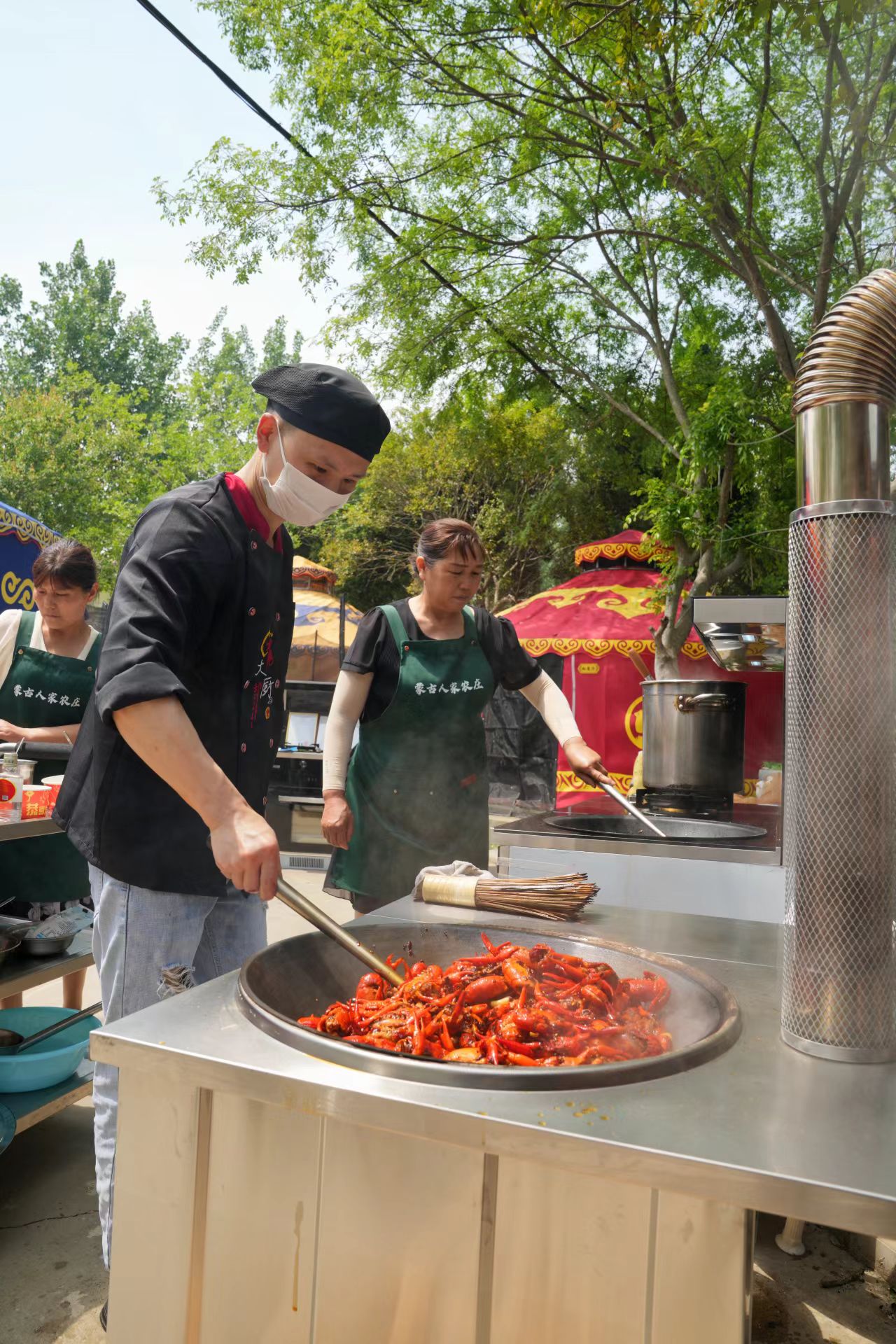 活动现场,几台柴火集成灶顺势摆开,一台灶上炖着的土鸡汤飘出鲜气,另一台灶上架着的锅里红烧甲鱼香味扑鼻,几十部手机对着灶具和美食拍个不停。还有一台集成灶前,只见一位年轻大厨挥舞锅铲,上下翻飞,不一会,色香俱全的油焖大虾出锅了,围观市民纷份拍照打卡点赞。