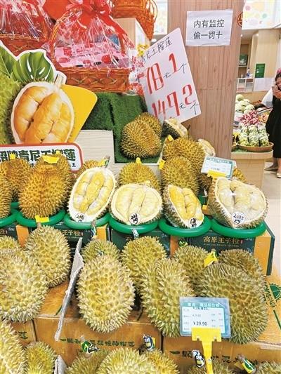 榴莲在我国是十分受欢迎的水果,根据世界贸易组织(WTO)2022年的统计,中国是世界上最大的榴莲进口国和消费国,中国进口的榴莲占全球榴莲消费的82%。记者查询海关总署进口数据得知,2023年鲜榴莲的进口总量为142.6万吨,比2022年约增加了40%。也就是说,我国消费者2023年大约“吃掉”了140万吨榴莲。近期,随着泰国东部榴莲进入旺产季,榴莲的价格比4月初跌了一半左右。目前广州市场上以泰国金枕榴莲为主,每斤榴莲价格约在26~35元之间。那么,榴莲价格还会继续下降吗?