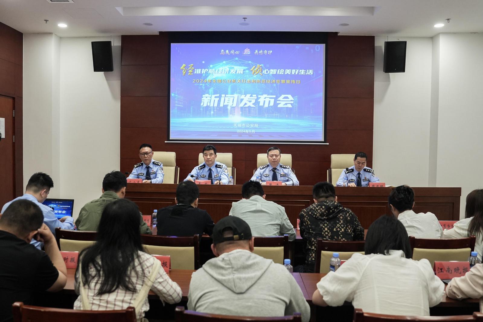 5月13日上午,无锡市公安局举办“‘经’准护航经济发展 ‘侦’心智绘美好生活”——2024年全国公安机关打击和防范经济犯罪宣传日新闻发布会,通报去年以来无锡公安打防经济犯罪的总体情况。
