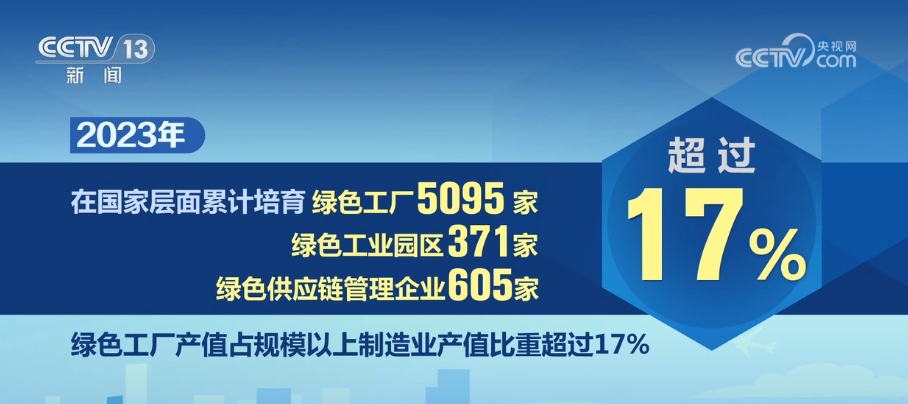2023年,我国高技术制造业增加值占规模以上工业增加值比重达15.7%。在国家层面累计培育绿色工厂5095家、绿色工业园区371家、绿色供应链管理企业605家,绿色工厂产值占规模以上制造业产值比重超过17%。
