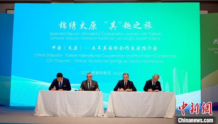 推介会现场,太原市与内夫谢希尔市签约建立友好合作关系协议书;山西建设投资集团国际公司与天建公司(TianConstruction)、太原市工商业联合会与土耳其独立工商业者协会(MÜSIAD)、太原西山生态文化旅游示范区管委会和山西九润集团有限公司与埃尔詹酒店管理与旅游进出口贸易有限公司等,分别签署合作协议。
