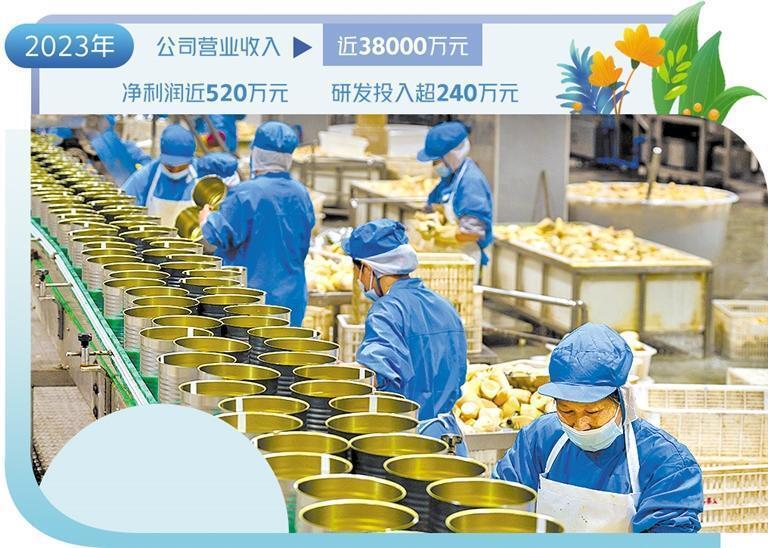 广雅食品的创新研发取得了实实在在的效果。2023年,广雅食品与高校合作开展的竹笋罐头加工速冻保鲜技术取得成功。通过设备将冰均匀注入新鲜竹笋的纤维间,将竹笋罐头的pH值从5.2左右提升至6.0以上,让竹笋的香味、口感更佳,最大限度保持竹笋的新鲜程度。公司研发的竹笋罐头加工技术以及保鲜工艺,减少了以往竹笋罐头加工的蒸煮环节,降低了冷链运输环节对塑料包装的依赖。不仅生产过程更加节能环保,而且每吨竹笋罐头产品生产成本较传统方式节约700元左右。“新推出的‘微冻竹笋罐头’利润较之前有所提高,也进一步释放出乐安竹笋的生态价值,做到了资源节约、环境友好。”陈光华说。