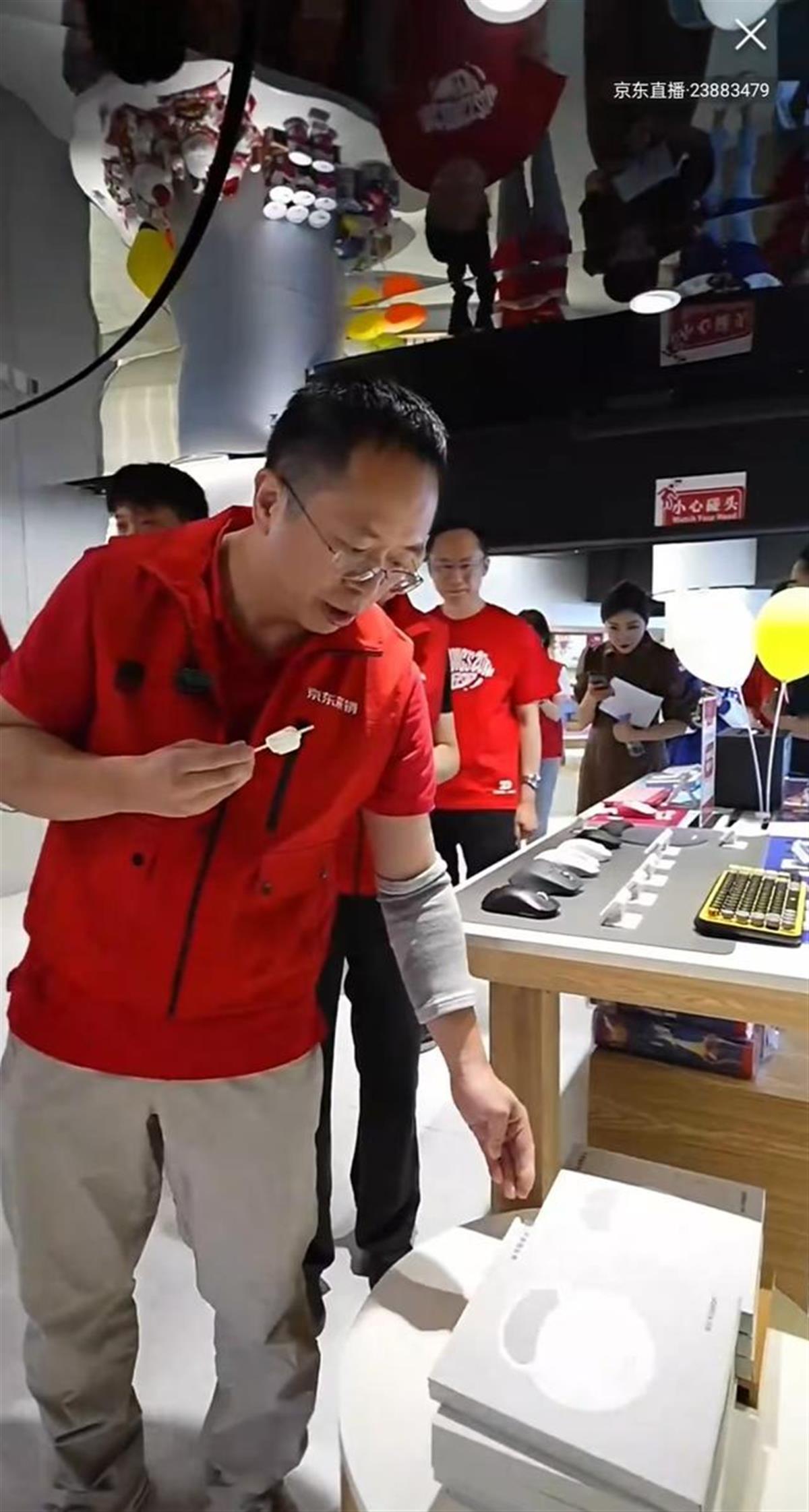 在直播画面中,周鸿祎和许冉都身穿京东采销的工作服,边走边谈话,其间还有主持人在身旁讲解相关产品内容。有趣的是,周鸿祎手拿一根雪糕,吃了一路。