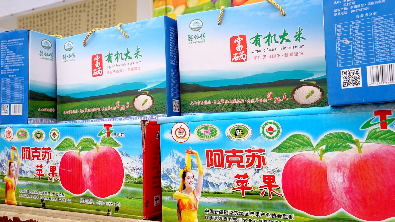 温宿大米和冰糖心苹果展示区(李哲清摄)