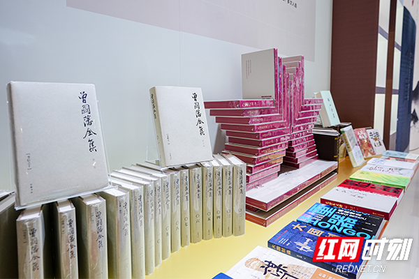 在湖南出版的图书展示区,可以看到以弘扬中华传统文化、展现悠久湖湘文化为主线,重点展示的一批有代表性的湖湘文化系列集成类图书,如《船山全书》《曾国藩全集》《左宗棠全集》等。