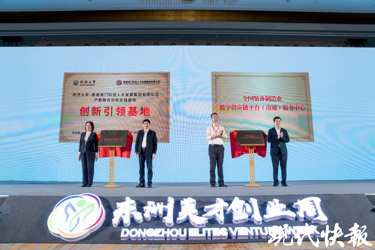 当天,同济大学产教融合创新引领基地和全国装备制造业数字供应链平台(南通)服务中心等两个重量级创新平台同时落户海门。8家知名基金公司、咨询公司、孵化器等第三方机构以及社会组织,聘为海门“全球招才合伙人”。本届创业周,还有张海波博士的高端质量流量传感器项目、杨峰博士的模块化胚胎培养系统项目、孙义民博士的天然高分子加工和新型阻燃剂合成项目、李逵博士的高分子半导体零部件国产化项目等20个高层次人才创业项目签约落地。