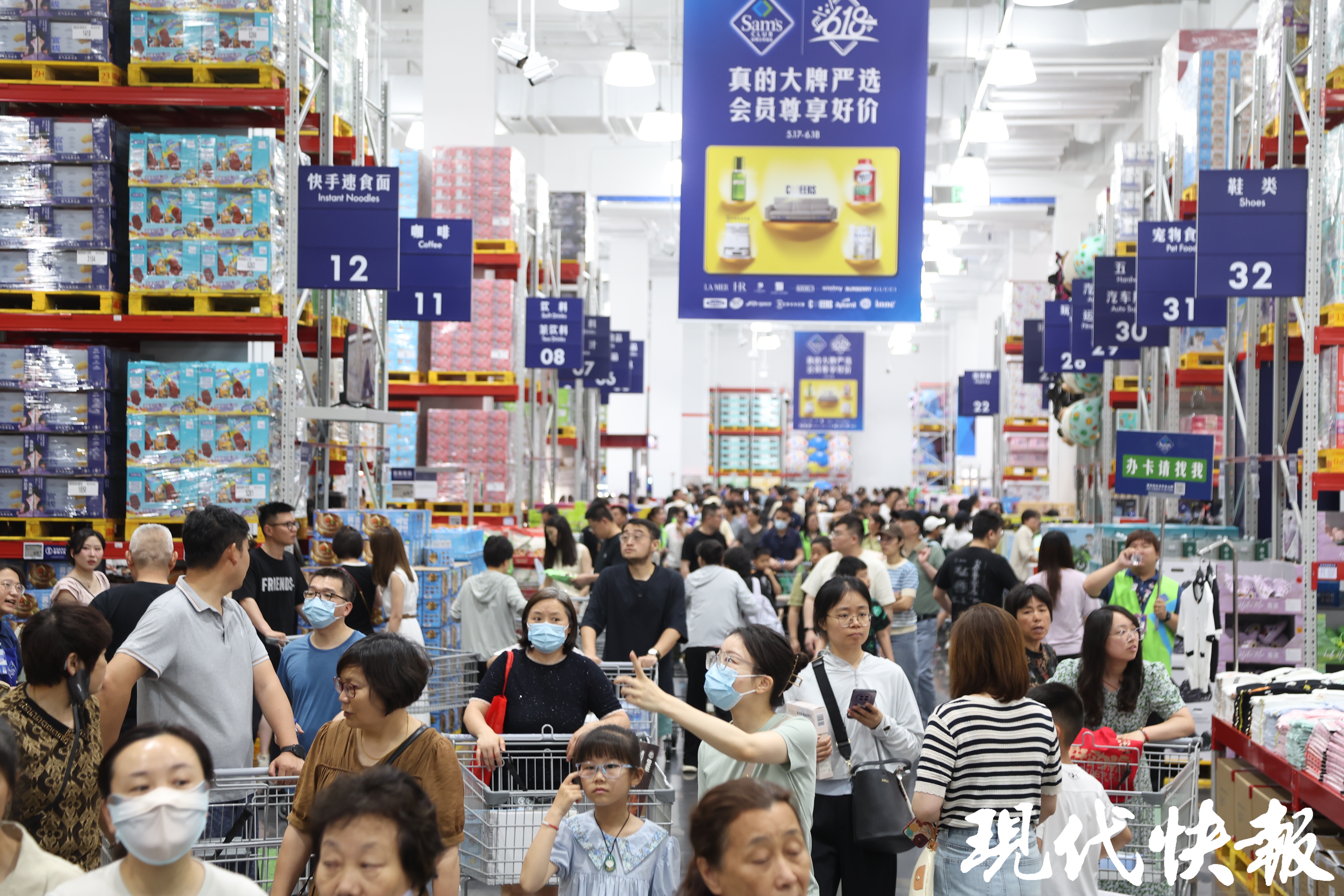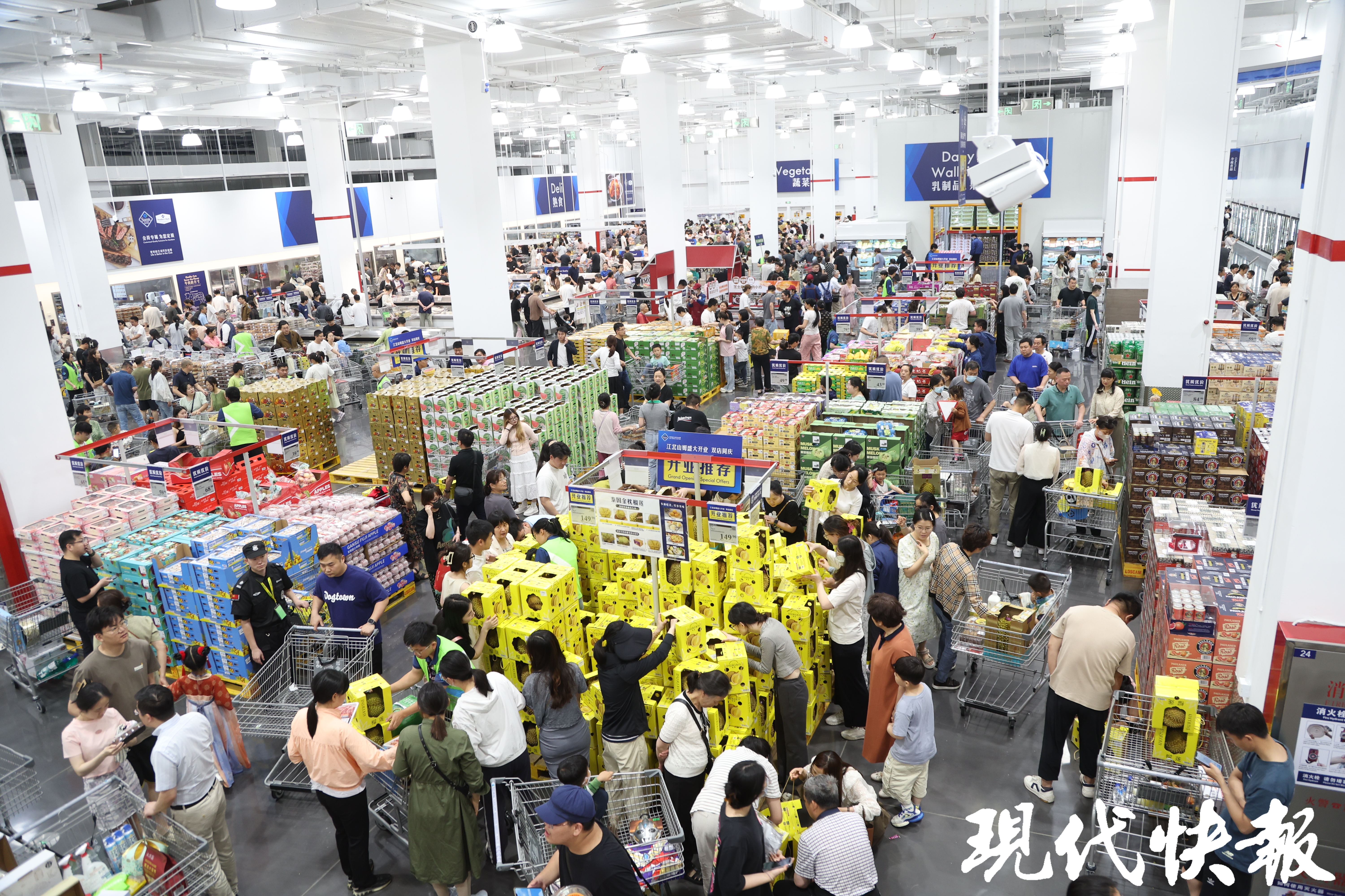 今天,你到山姆南京江北店排队了吗?5月25日,山姆会员商店在南京布局的第二个店——南京江北店(以下简称“山姆江北店”)开业第一天,火爆从停车场入口长龙般的队伍开始。现代快报记者在现场看到,当天赶来“尝鲜”的顾客络绎不绝,进门排队、结账排队。