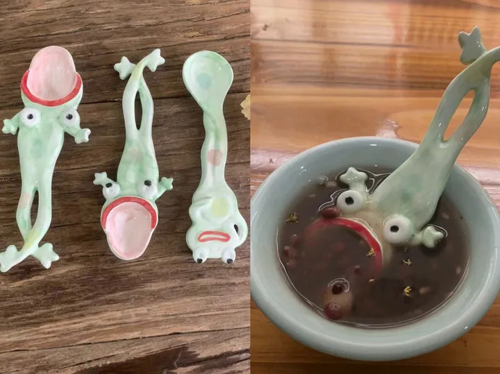 去年年底,一只长着血盆大口的“碧绿青蛙勺”走红,一度被网友称为“减肥神勺”。巨大的关注度,为这只勺子的店铺带来了“泼天的富贵”。据媒体报道,其创作者陈二沟从“吃饭困难”的景漂,一跃成为月入十万的“淘宝品牌主理人”。