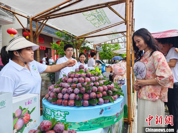6月1日,游客在“中国李乡·山水双合”景区内购买三华李。杨丽兰 摄