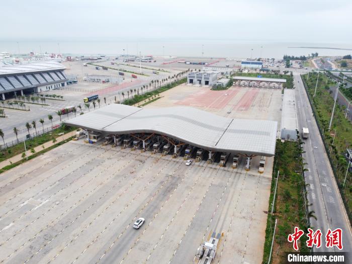 5月31日,航拍海口新海港综合客运枢纽的“二线口岸”车辆查验通道。陈英清摄