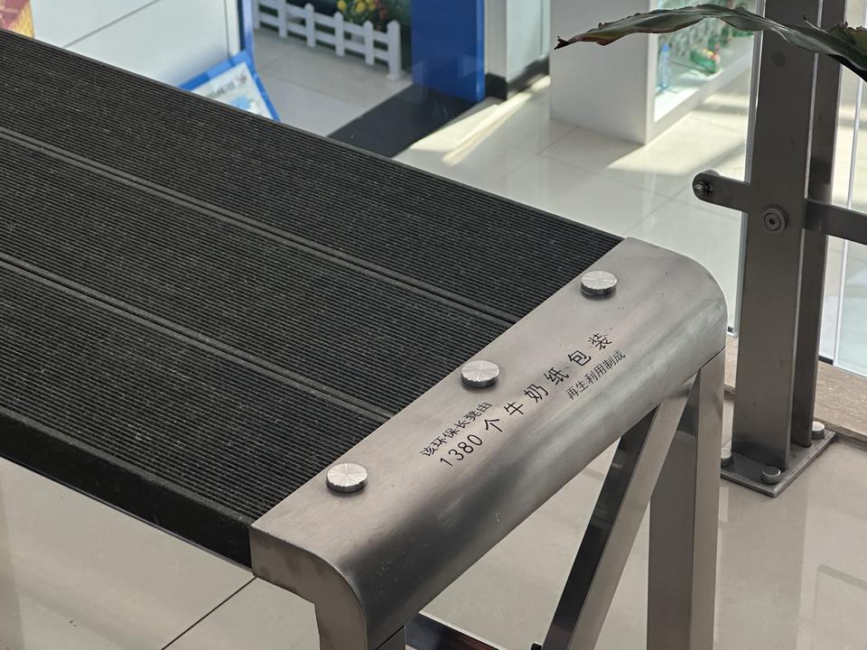 1380个牛奶纸包装“变身”环保长凳;回收的牛奶饮料盒制作成垃圾桶……在潍坊伊利乳业有限责任公司的生产车间里,再生循环利用随处可见。
