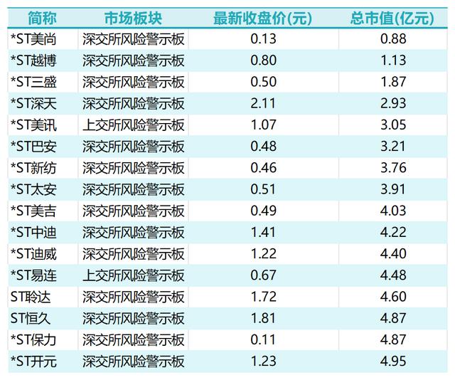 据统计,目前已有多只A股主板公司市值低于5亿元。