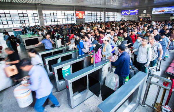 北京西站候车室旅客有序进站(中国铁路北京局供图)