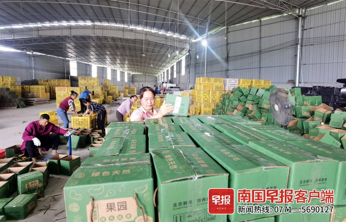 记者在荔浦市众享果蔬专业合作社内看到,工人们正紧锣密鼓地对夏橙进行精选和装箱。